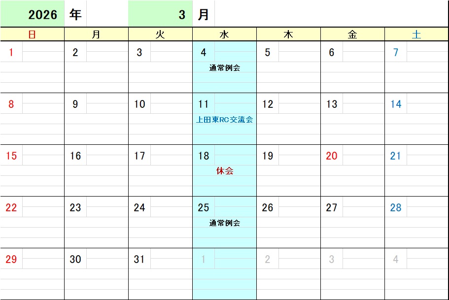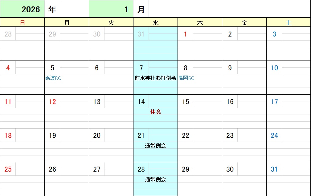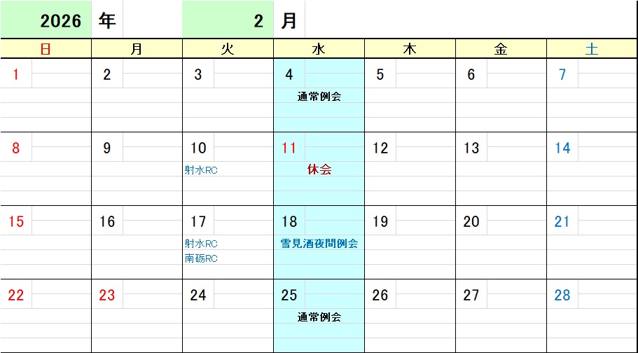 - 青色で掲載されているクラブは受付のみ。 ▲は例会取消or受付なし